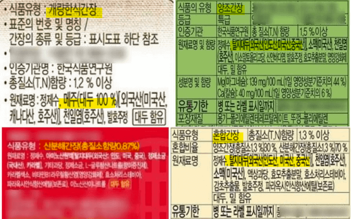 보통 홍보용 광고 문구에는 과장이 섞일 수 있지만, 마트 제품 라벨에는 거짓말을 할 수 없으니, 라벨에서 '메주'라는 단어나 '한식 간장'이 표기되어 있는지 확인하시고 구입하시기 바랍니다.