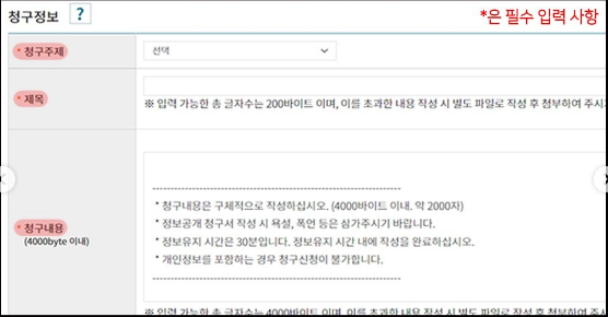 2) 제목 : 고소장 정보 공개 열람 신청 드립니다.