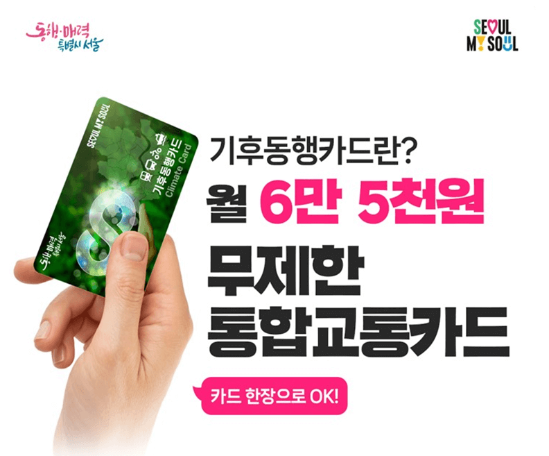 2024년 하반기부터 정식으로 시행되는 서울시 기후 동행 카드의 시범 사업이 1월 27일부터 시작됩니다. 월 6만 5천 원으로 서울시내에서 지하철 · 버스 · 따릉이 · 리버 버스까지 무제한으로 이용 가능한 혜자템이니, 꼭 신청 하시기 바랍니다.