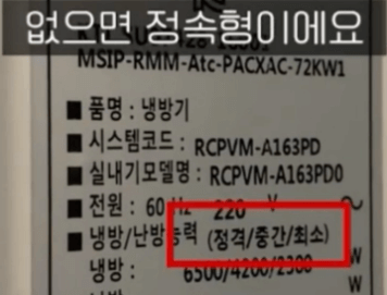 | 정격 능력, 냉방 능력 등이 "정격/중간/최소" 또는 "정격/최소"로 세분화 되어 있는 경우 [인버터] |
