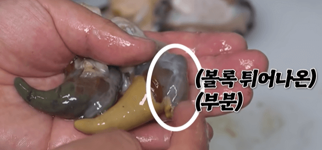 ※ 정말 중요한 전복 손질 방법 : 식도와 입, 모래주머니는 반드시 제거해서 버리기