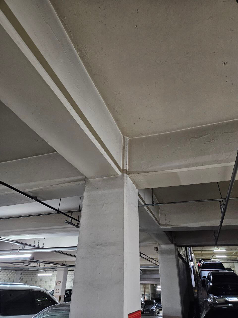 ⭕ 천장을 봤을 때 기둥이 튀어나온 + 모양에 있다면 ⇒ 기둥식 라멘구조