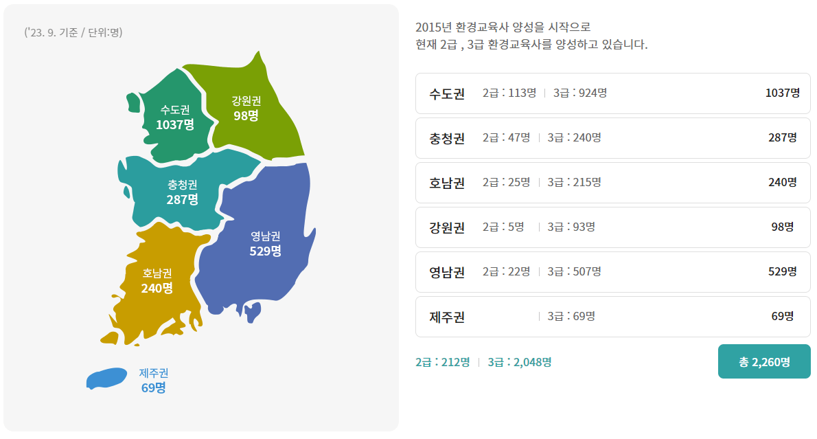 2023년 기준 3급 환경 교육사는 총 2,048명으로,